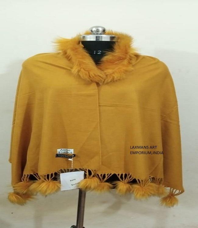 Acrylic Woollen V Neck Long Line Women's Ponchos Jackets with Cut-out Design Winter Season Solid Pattern Wholesale From India