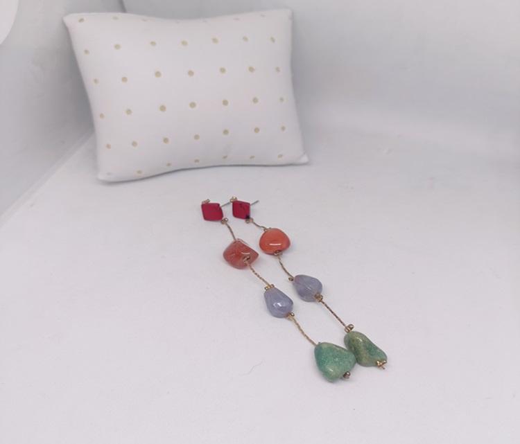 Acrylic Multi Stone Bead Drop Earrings for Women Bohemian Style Long Hanging Beaded Earrings