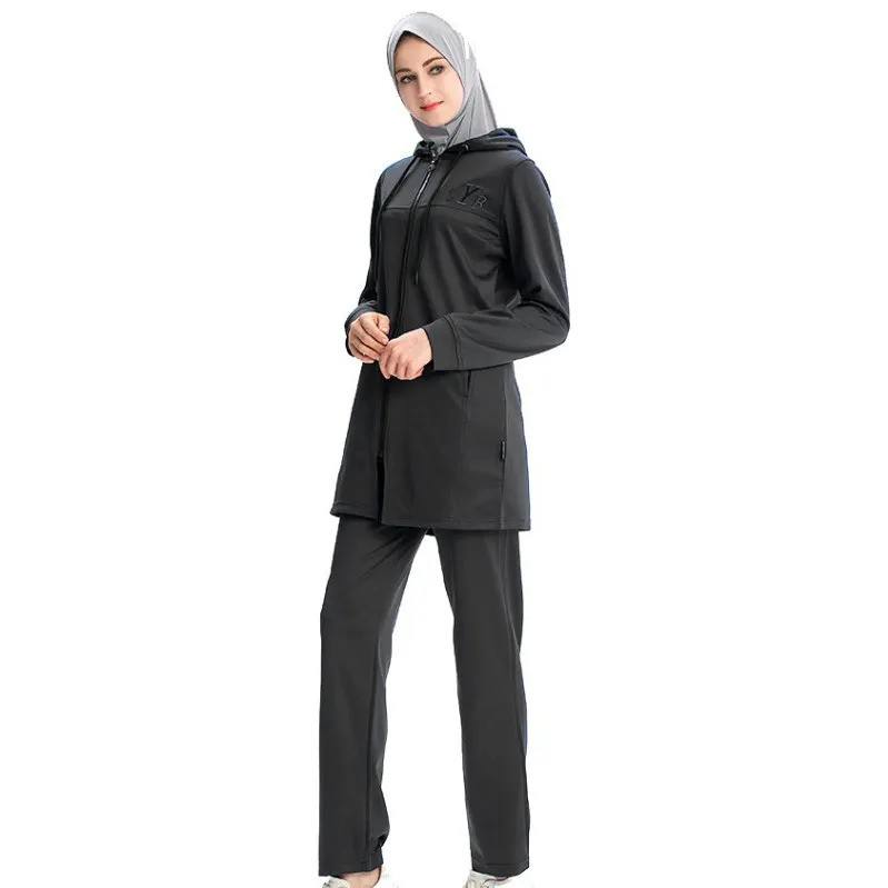 Active-Wear Women's Colorblock Pattern Swim Dress Modest Workout Top 3/4 Legging Breathable Eco-Friendly Quick Dry Lightweight