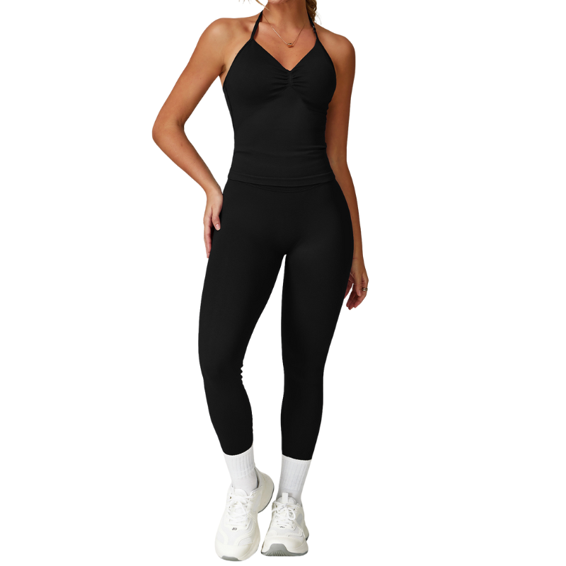 Active Wear Yoga Bra and Shorts Set Halter Tight Fitting Short Top Casual Fitness Trousers Suit Yoga Sets