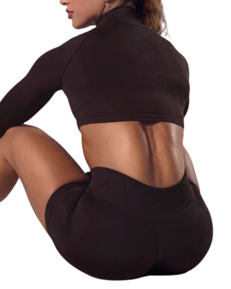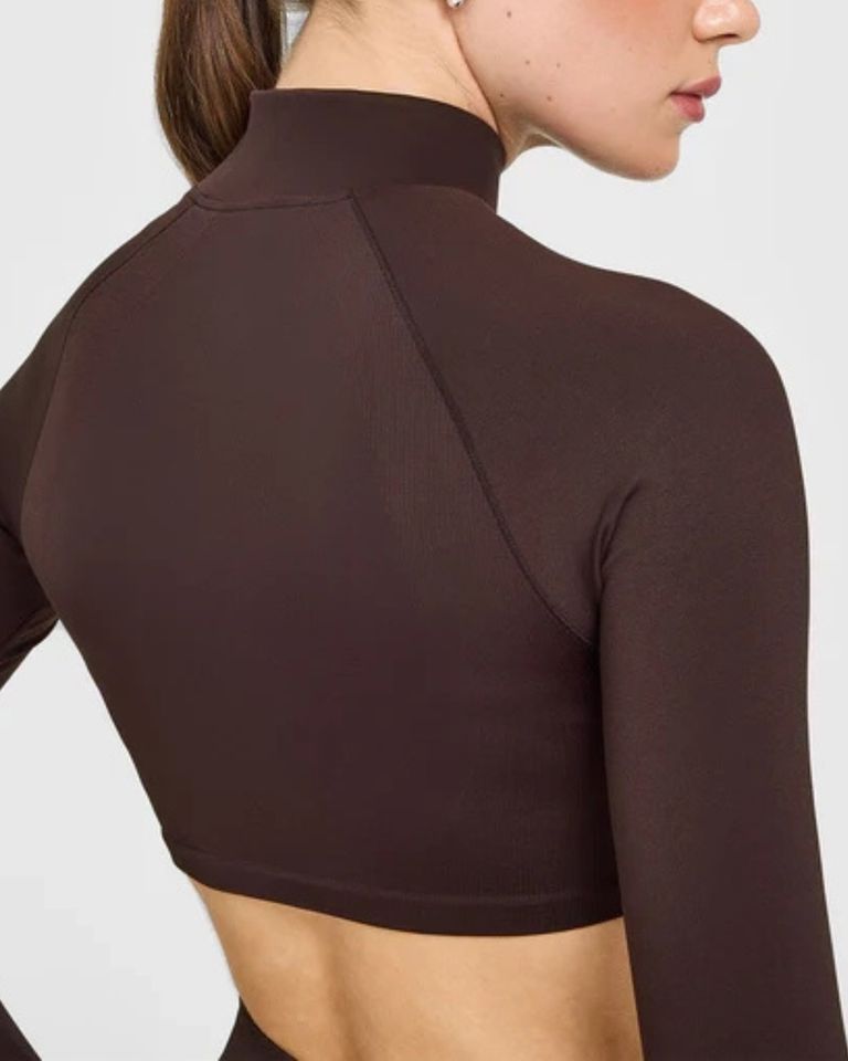 Activewear Ladies Cropped Yoga Jacket Full Zip Stand Collar Thumbholes Slim Fit Breathable Front Running Top Short Length Gym