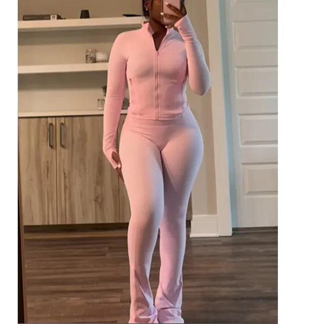 Activewear Sets for Women Zip up Active Jacket Nylon Elastane Leggings Flared Pants Yoga Sets Two Piece Yoga Set Women