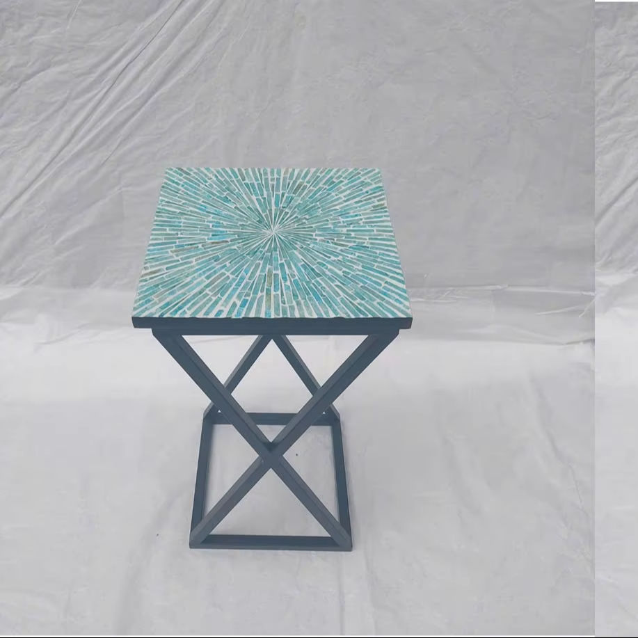 Product name:Mother of pearl inlaid display table with iron legs, Home furniture
