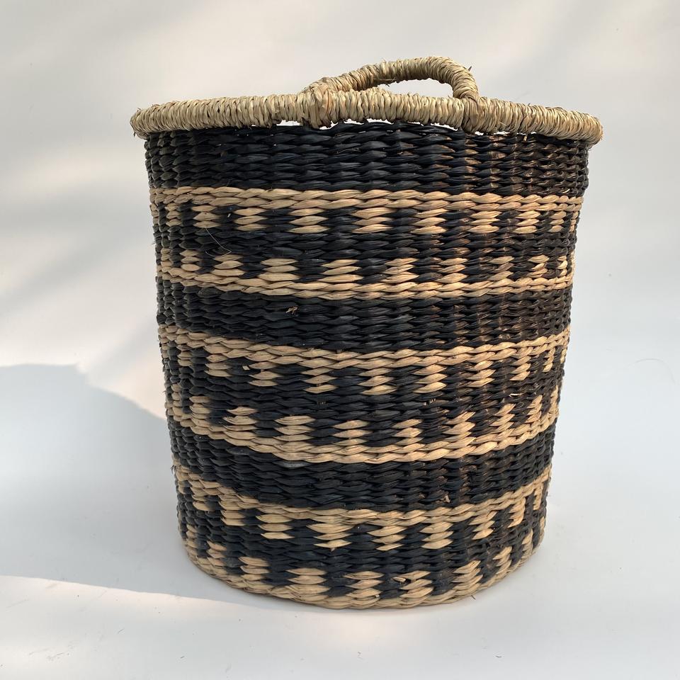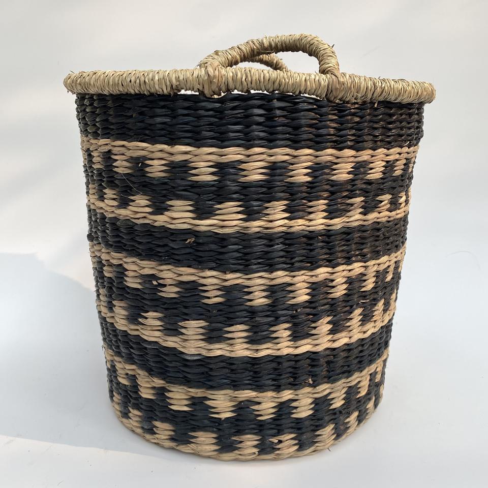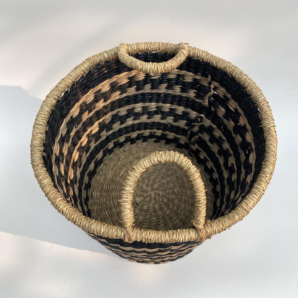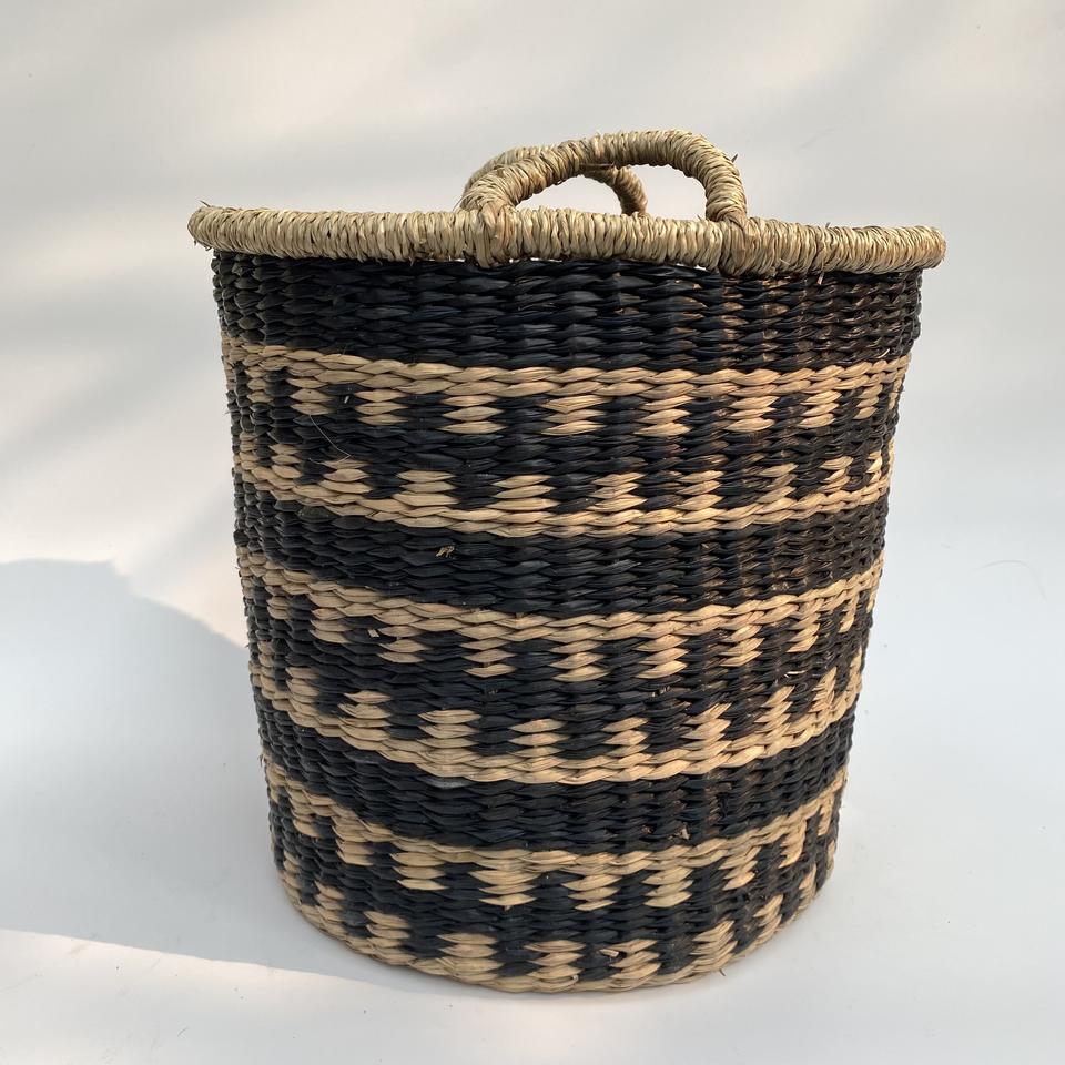 Round Seagrass Storage Basket with Handle Woven Black and Yellow Lid Best Price in Vietnam Low MOQ