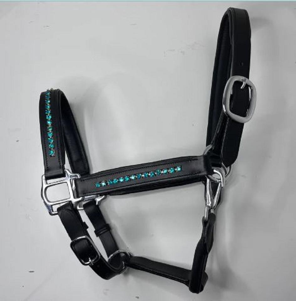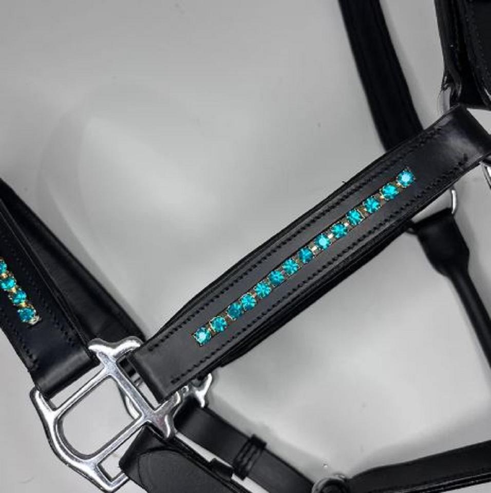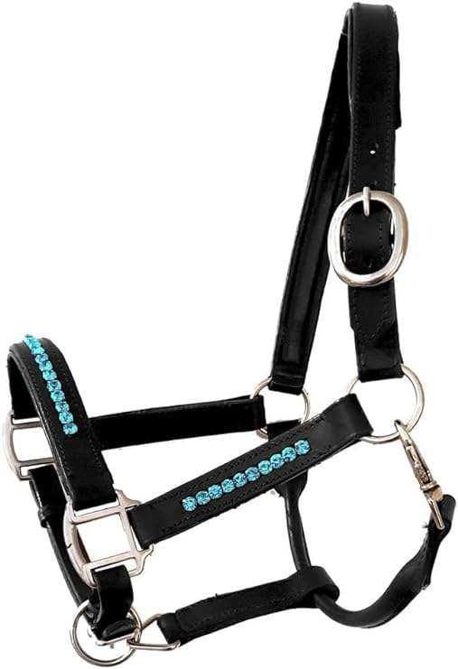 Adeefa Enterprise Leather Halter Turquoise Crystal For Horses With SS Fitting Headcollar for Horses.