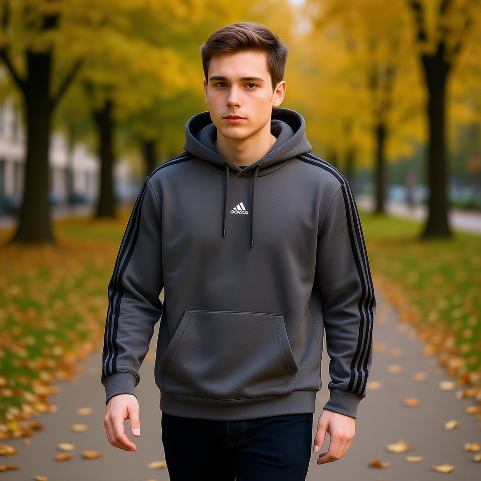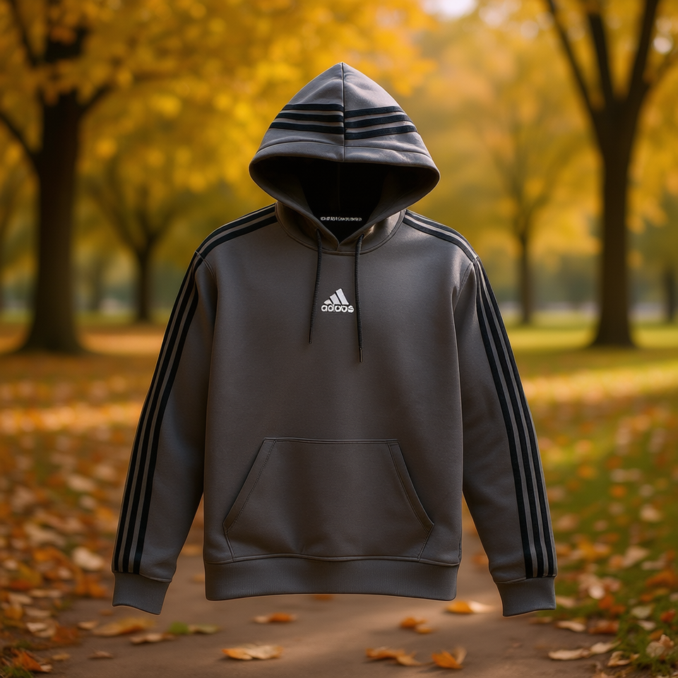 Adidas Adi Bos Stripe Hoodie Men Dark Grey Regular Fit Fleece Hooded Autumn Wear
