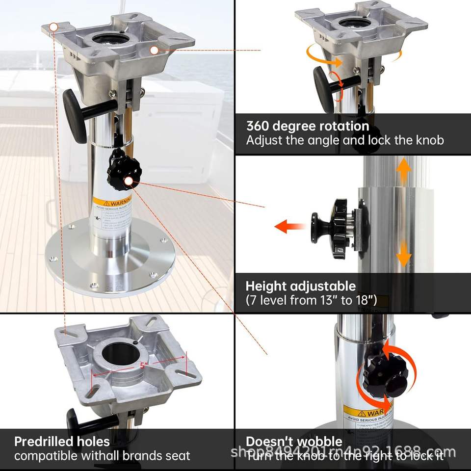 Adjustable 13 to 19 Inches Aluminum Height-Locking Seat Base for Marine Hardware
