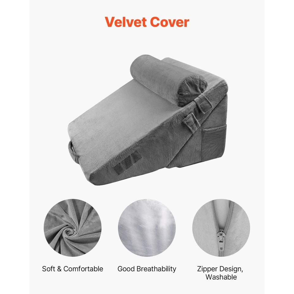 3-Piece Set: Support Pillow+Triangle Pillow+Half-Moon Pillow-Velvet FaD010275EBN6