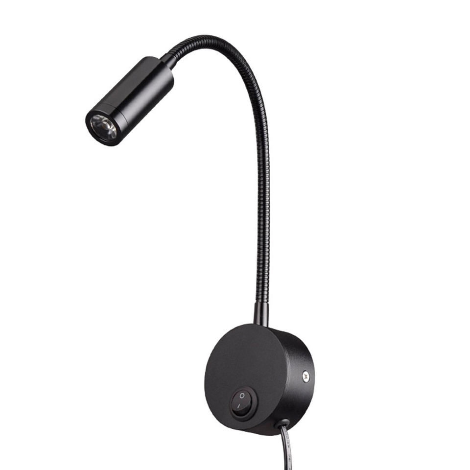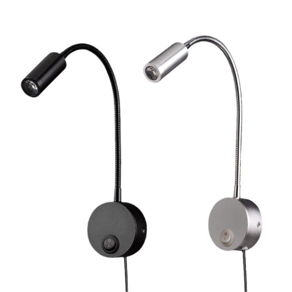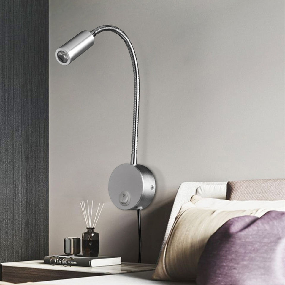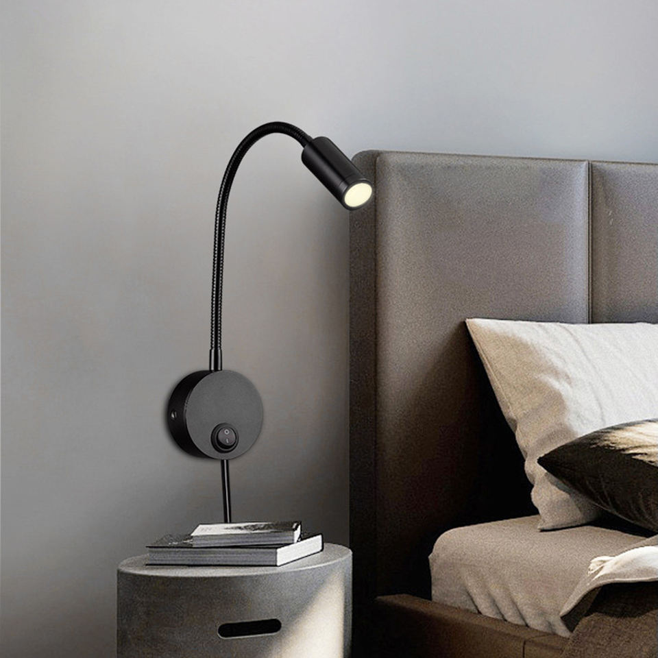 Adjustable 3W Modern LED Iron Flexible Goose Neck Wall-mounted Dimmable Warm White Headboard Reading Lamp for Bedroom
