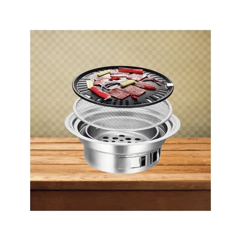 Adjustable 40cm Non-Stick Stainless Steel Charcoal Grill Portable Barbecue Stove for Home Outdoor Camping Parties for Kitchen