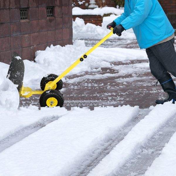 Adjustable 74*47cm Human-Powered Snow Plow with Iron Yellow T-Handle and Black Blade for Snow Sweeping