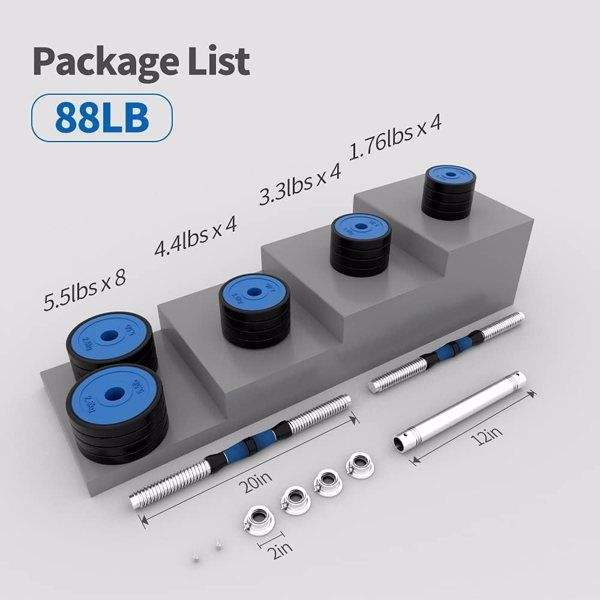 Adjustable 88Lbs Weights Dumbbells Set of 2 2-in-1 Exercise & Fitness Barbell for Men & Women