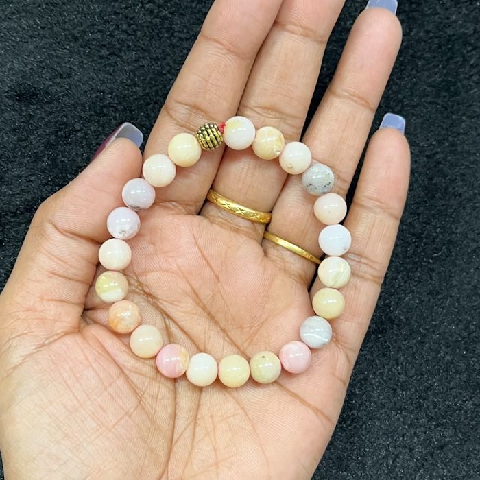 Adjustable 8mm Pink Opal Brass Bead Bracelet Wholesale Christian Symbolism Stretch Bracelet for Men Women for Wedding Party Gift