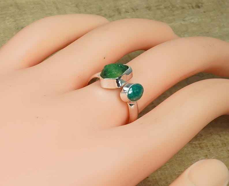 925 Sterling Silver Fine Ring Handmade Rough Emerald Green Jewelry Gift