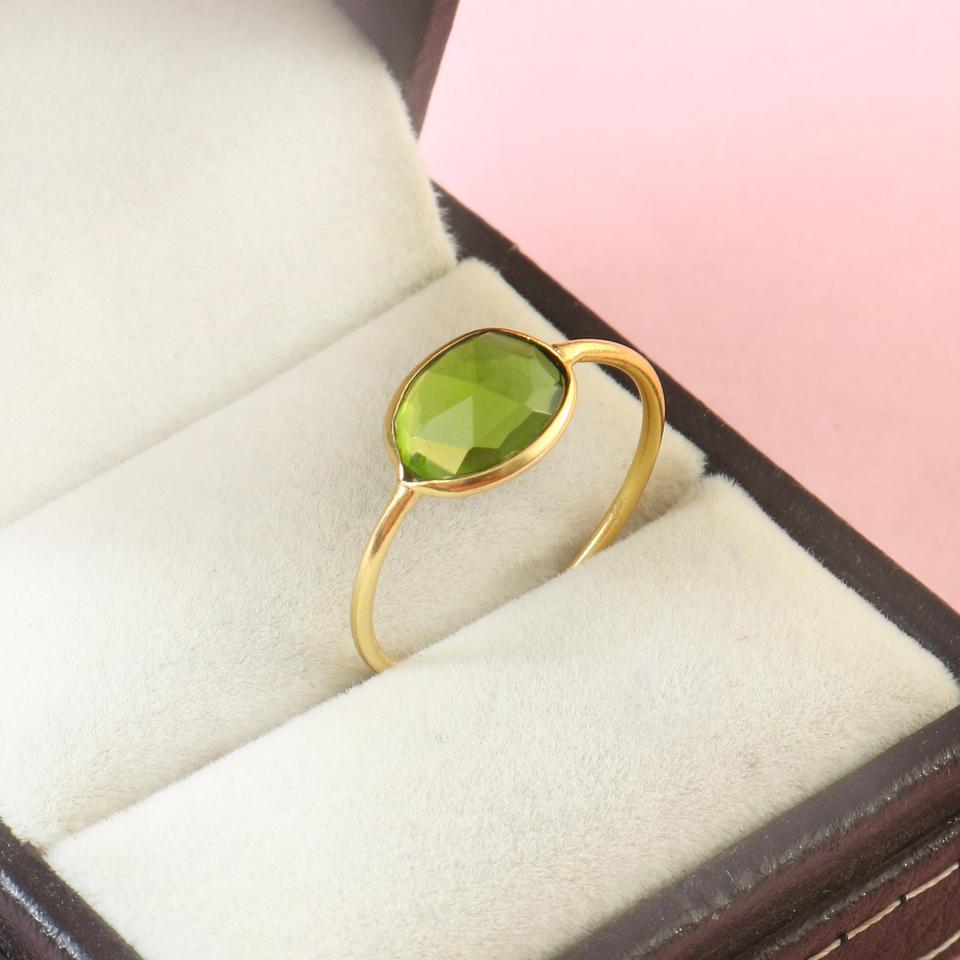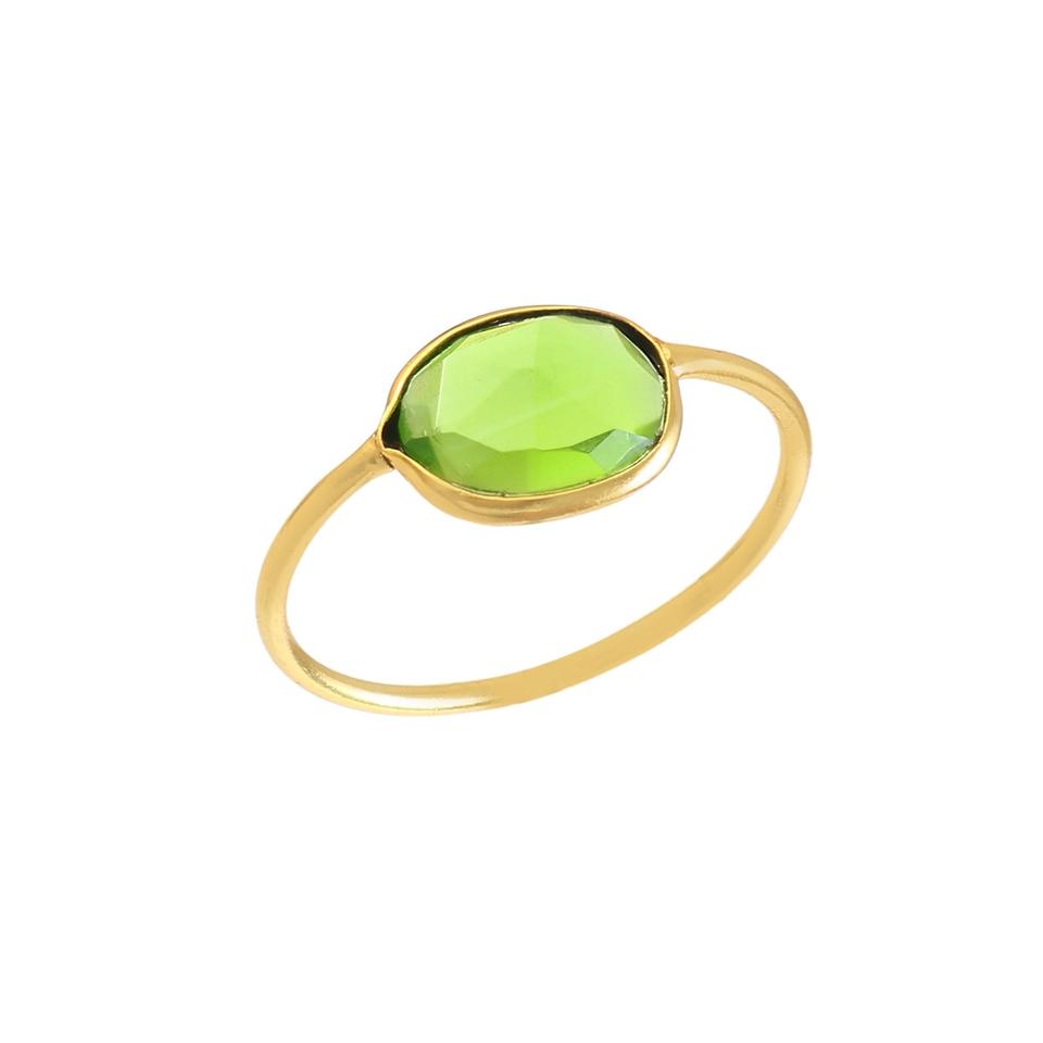 Adjustable 925 Sterling Silver Wedding Ring Classic Bezel Setting with Handmade Gold Plating Featuring Peridot As Party Gift
