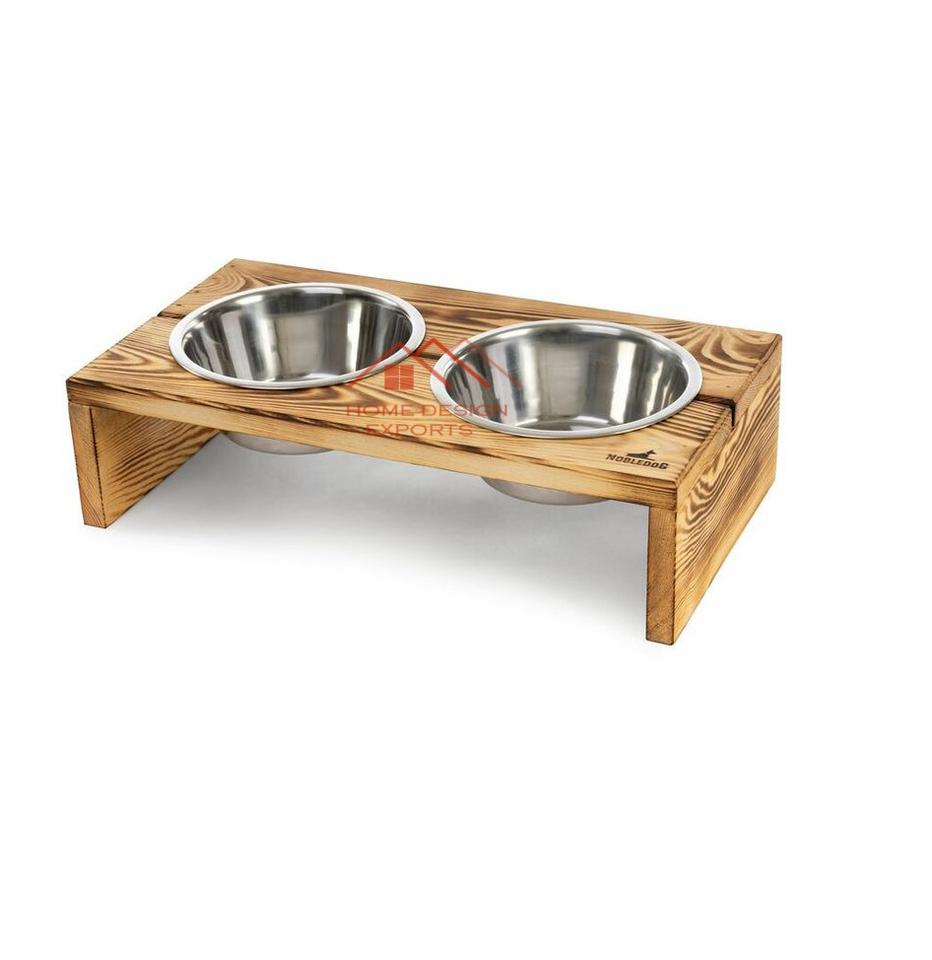 Adjustable Bamboo Wood Raised Small Pet Bowls Elevated Feeder for Dogs Cats Food and Water Bowls Stand Animal Feeder