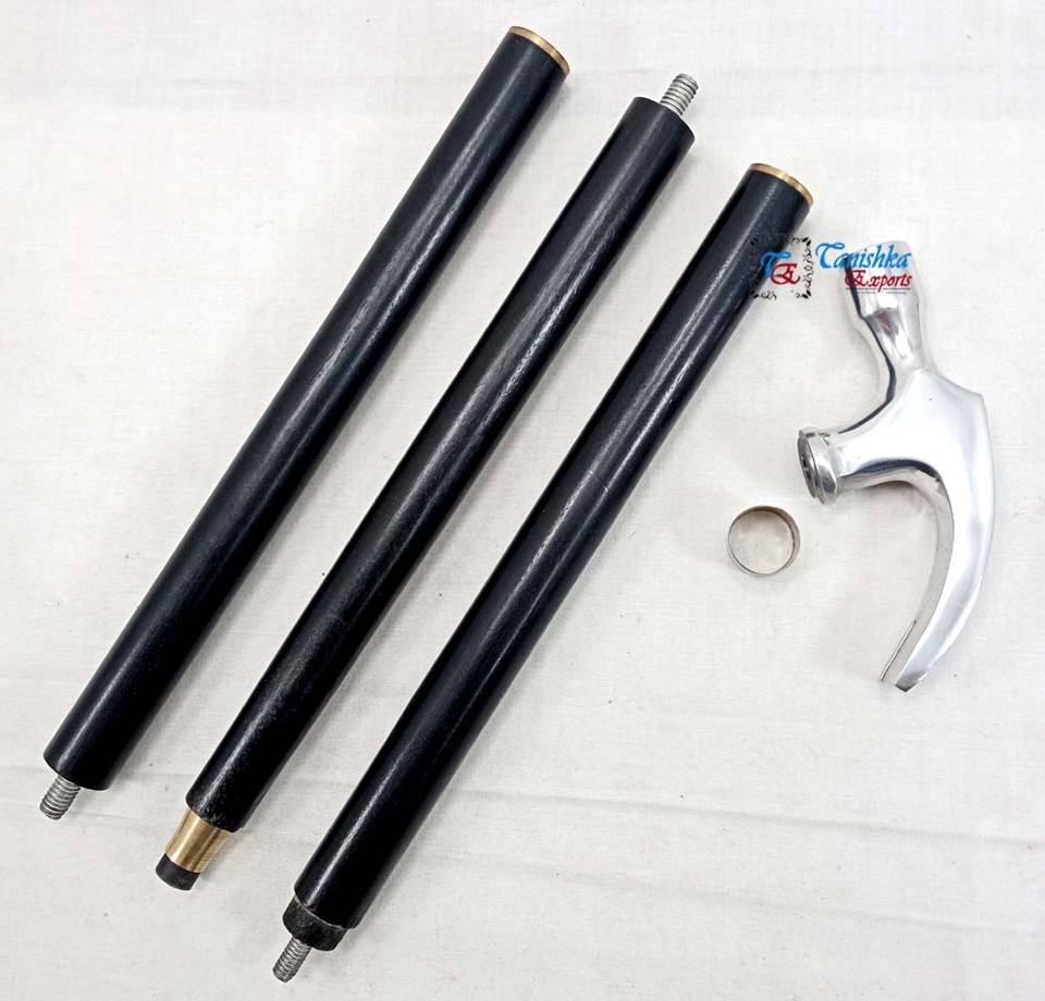 Adjustable Black Wooden Walking Stick with Aluminum Hammer Design Handle Art Deco Foldable Luxury Gift for Grandparents