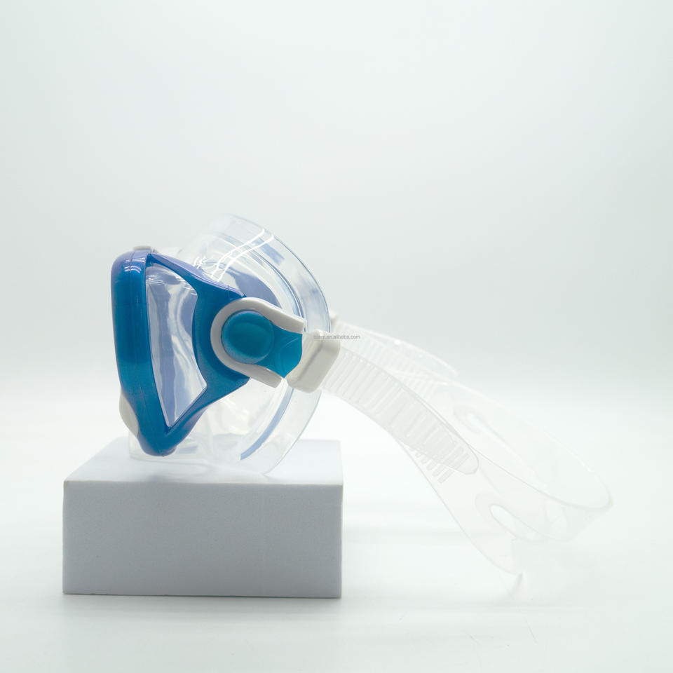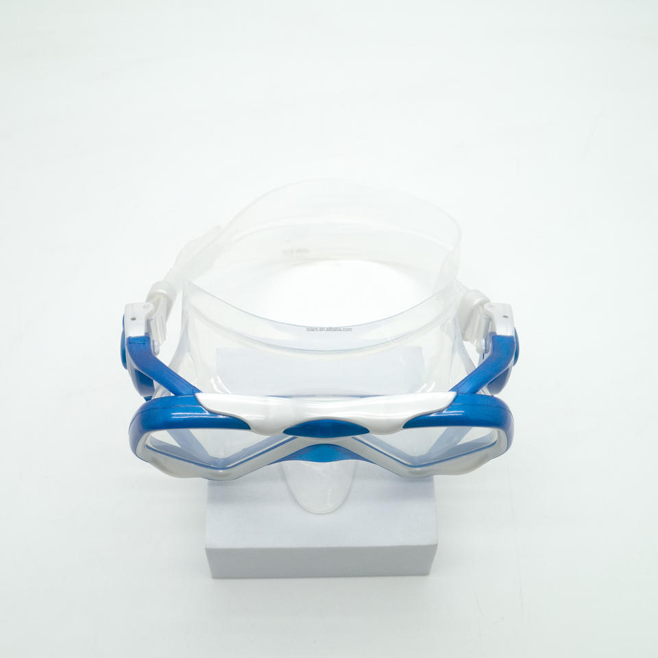 Adjustable Blue Snorkel Goggles with Anti-Fog Tempered Glass Lens and Wide View Nose Cover Diving Goggles