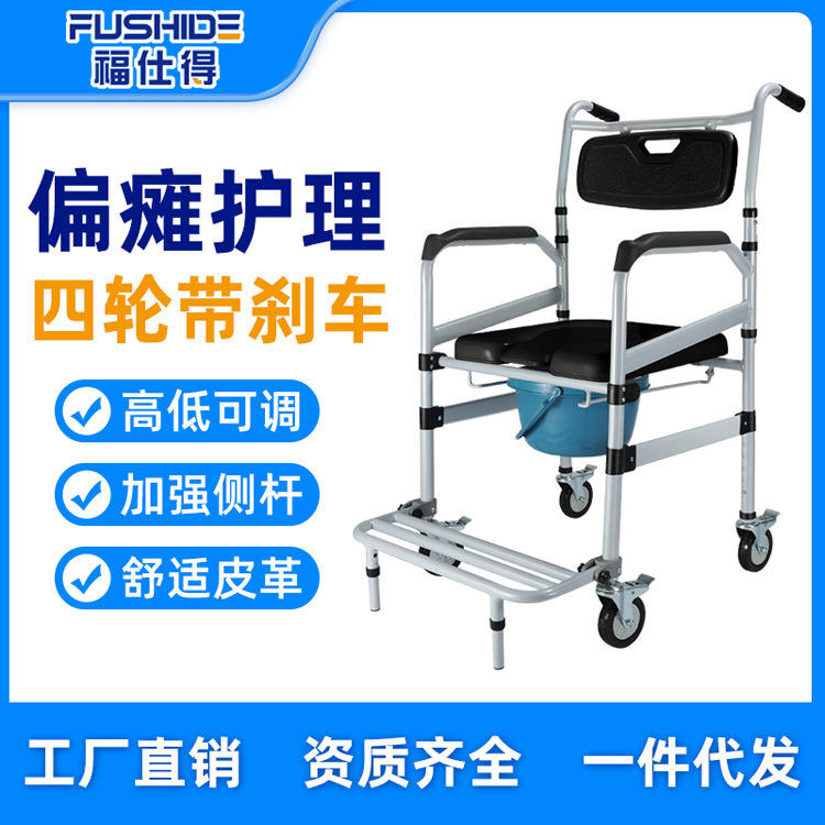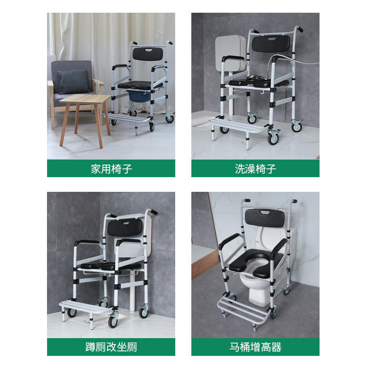 Adjustable Commode Chair With Wheels For Elderly And Pregnant Women Hospital Use 14cm Footrest Height