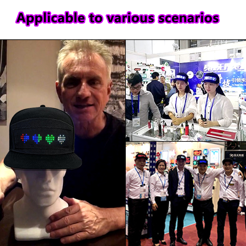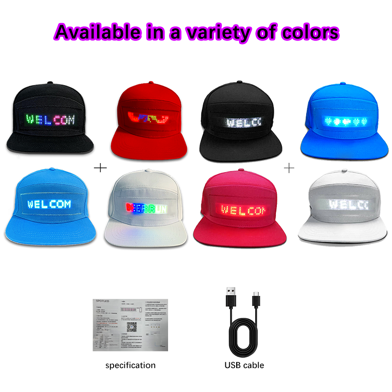 Adjustable Cool LED Baseball Cap Street Style Fabric Hat with Animated Pattern Scrolling Message App-Controlled Sporty Image