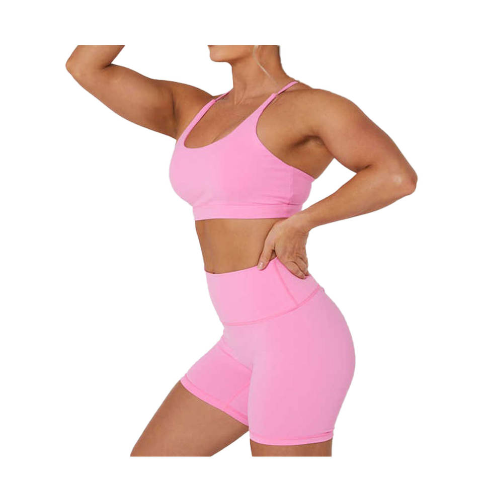 Adjustable Cotton Sports Bra and Gym Shorts Two Piece Set for Women Fitness Yoga Workout