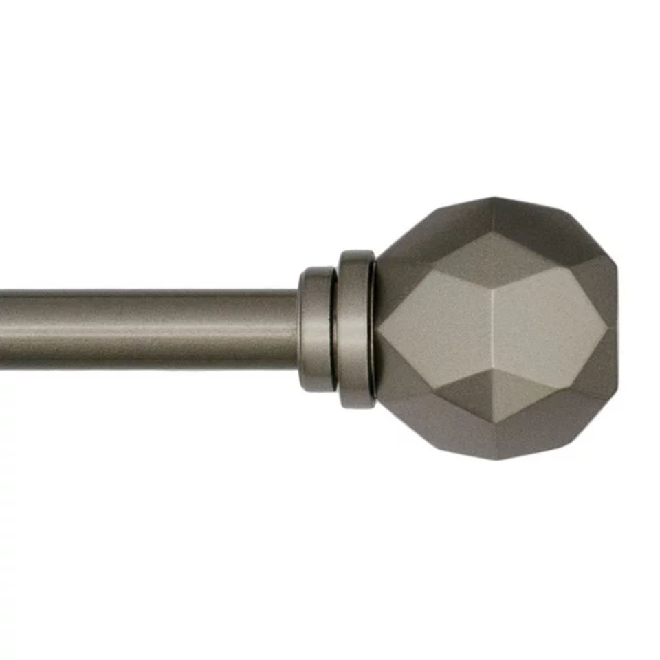 Adjustable Curtain Rod Set Geometric Finial Heavy Duty Metal Wall Mount Brackets Satin Nickel Finish Window Drapes Home Decor