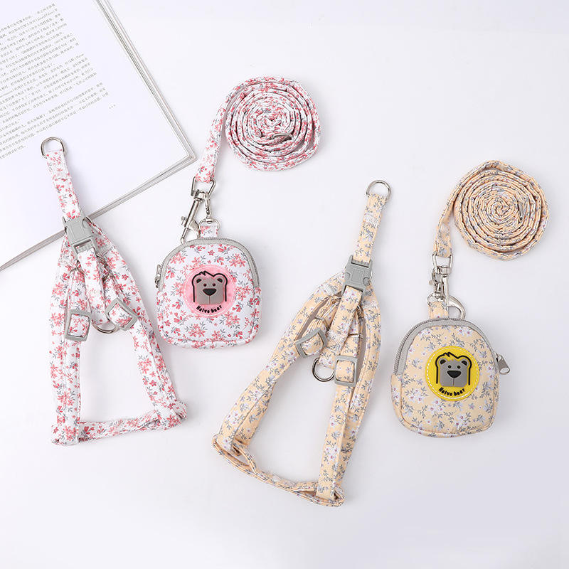 Adjustable Custom Harness Set Durable Print Dog Leash Running Walking Meash Padding Harness and Leash Set