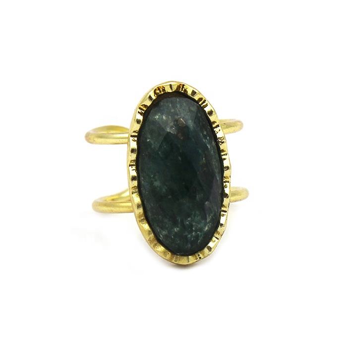 Adjustable Double Band Ring with Beautiful Blue Topaz Gemstone Gold Plated Hand Designed Oval Faceted Cut Jewelry Fashion Rings