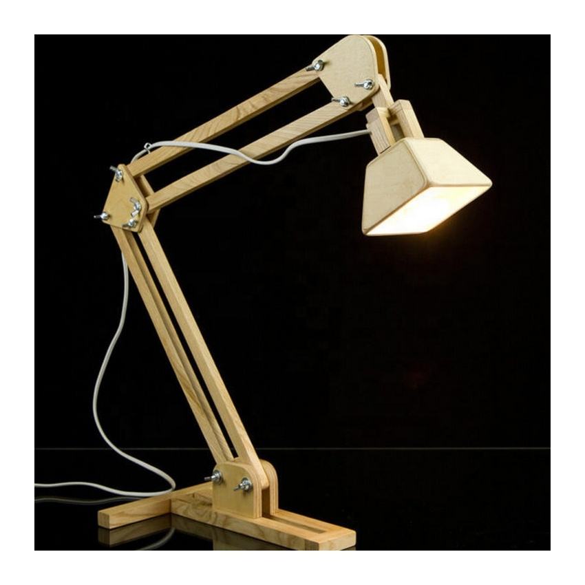 Adjustable Electric Wooden Table Lamp | Modern Desk Light with Wooden Shade Energy Saving LED and Retro Industrial Style