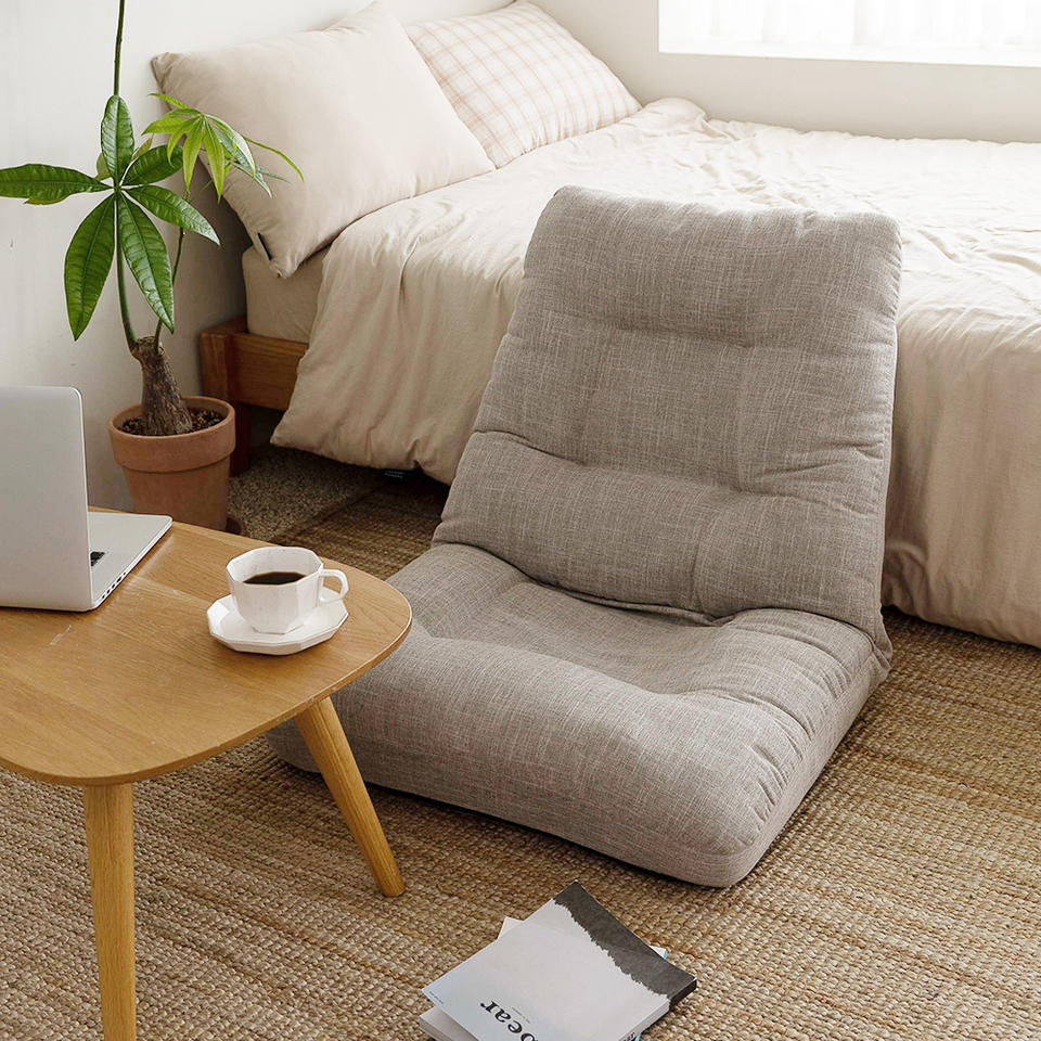 Adjustable Floor Recliner Seating Single Seat Grey Beige Fabric Lazy Baby Low Floor Lounge Cushion Sofa Chair