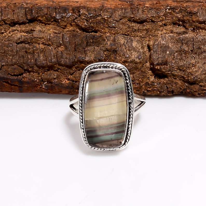 Adjustable Fluorite Ring Vintage 925 Sterling Silver Gemstone Handmade Jewelry Gift For Women Girls