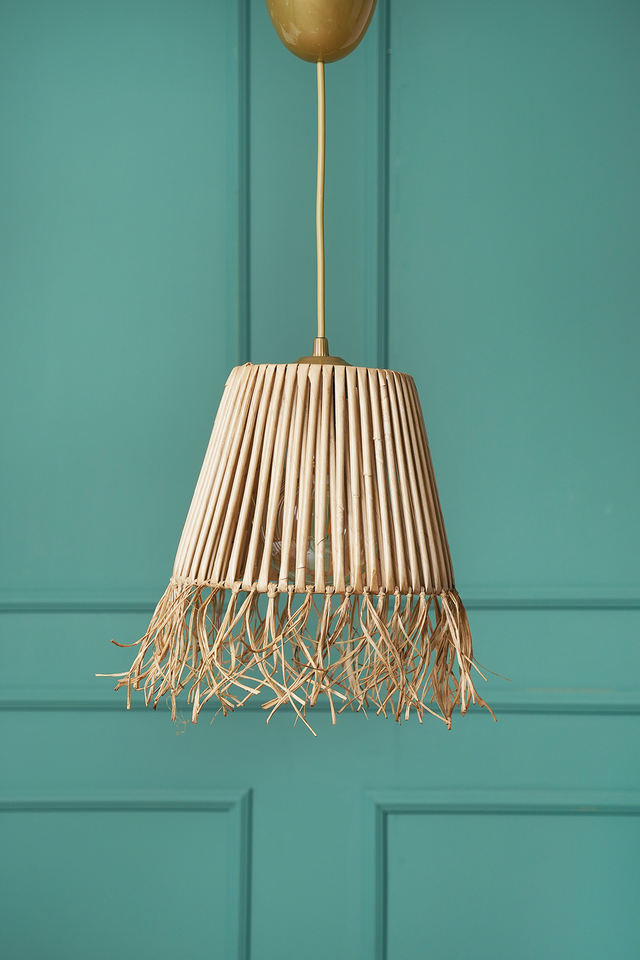 Adjustable Handmade Rattan Dome Pendant Light with Fringe Natural Boho Design for Home Office Dining and Living Room