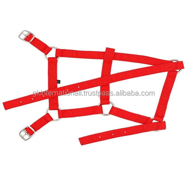 Adjustable Head Collar Nylon Horse Halter for Horse Equestrian in Double Ply Red Nylon with Stainless Steel Accessories