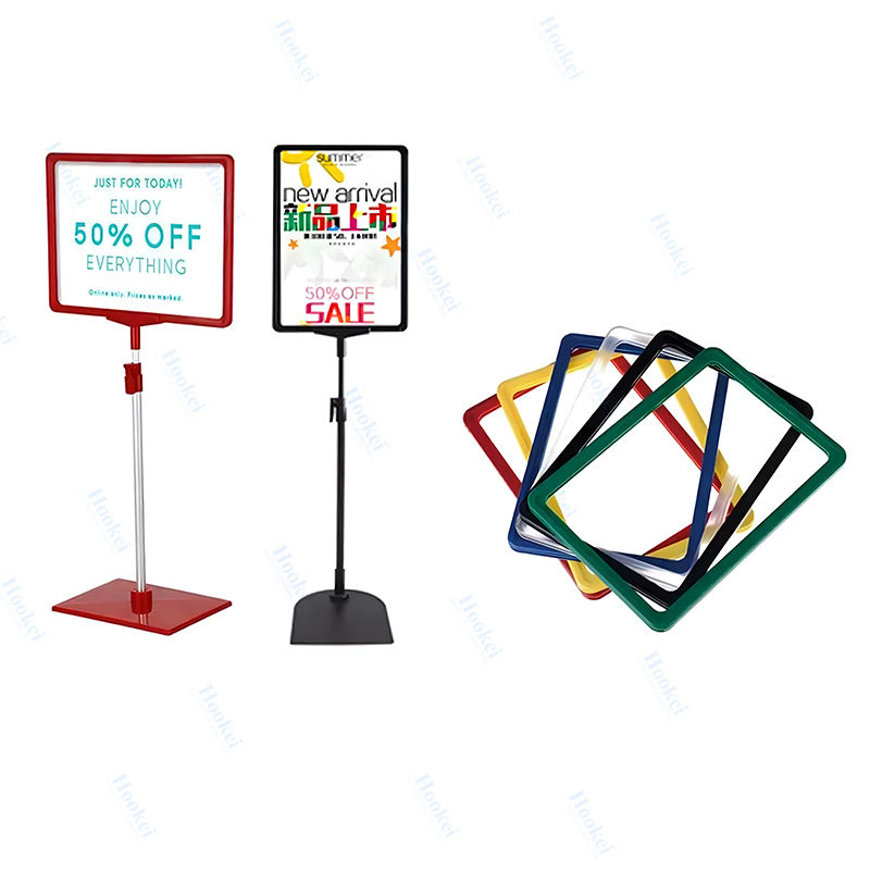 Adjustable Height Floor Metal Base Plastic Pop Advertising Snap Board Sign Holder Poster Display Stand With A4 Frame