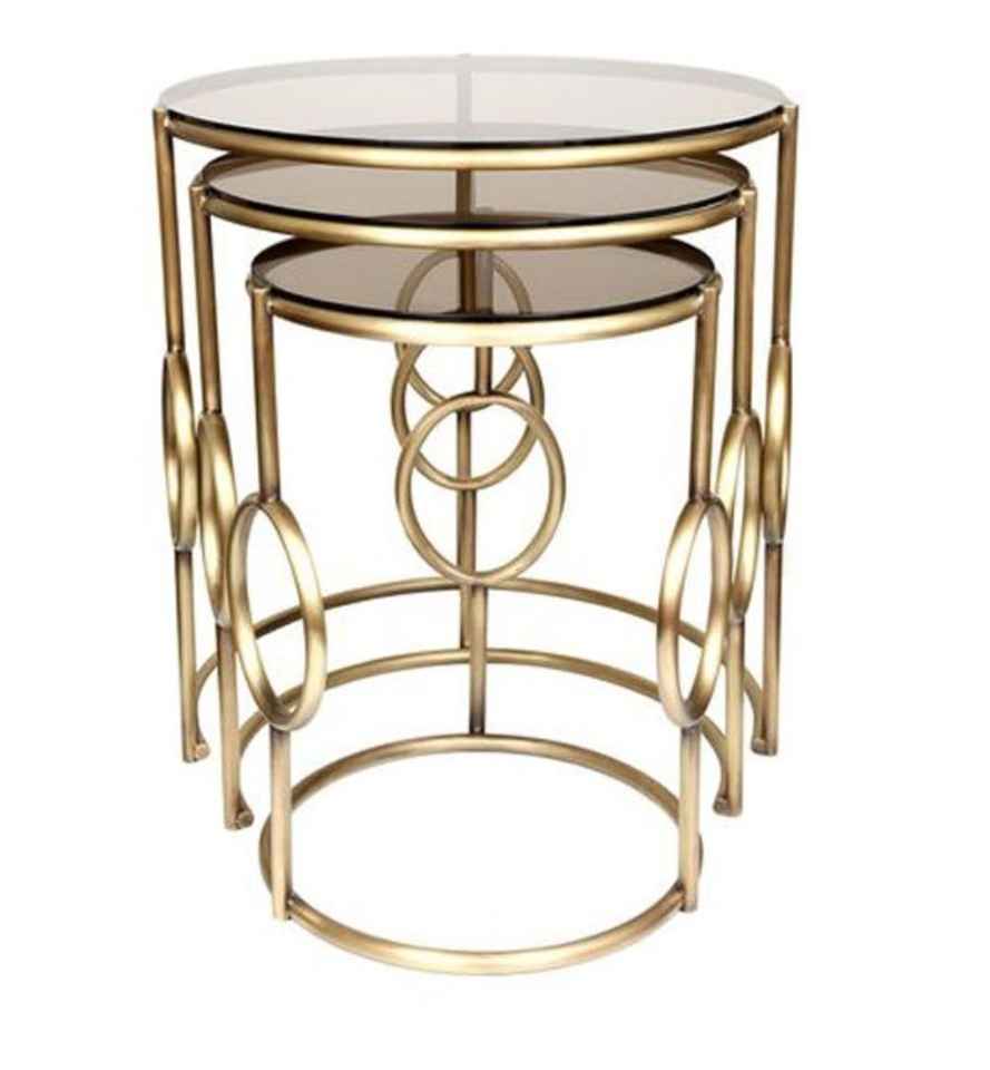 Antique Gold Metal Coffee Table Set Adjustable Height Velvet Unique Foldable Furniture for Hotel Living Room New Collection