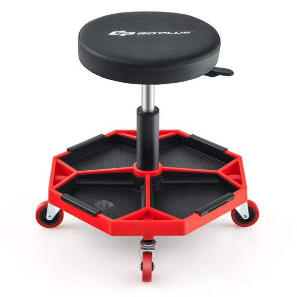 Adjustable Height Rolling Stool Red Heavy Duty with Tool Tray Storage 330 LBS Capacity Salon Trolley