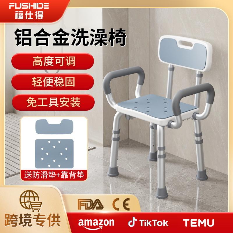 Adjustable Height Shower Stool With Backrest Aluminum Alloy Bathroom Safety Equipment For Seniors And Pregnant Women 46x58x87cm