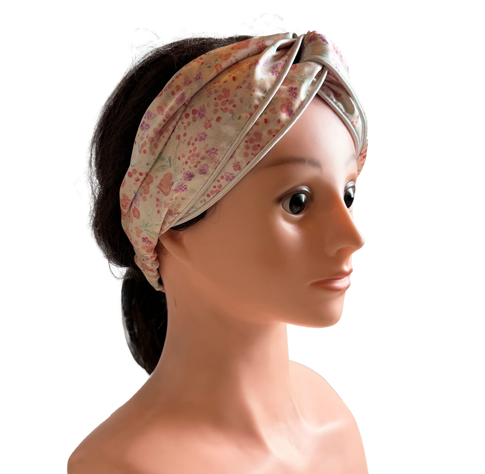 Adjustable Knot Design Floral Satin Headband 23cm X 11cm for Securing Hair Away From Face During Facial Treatments Spa Travel