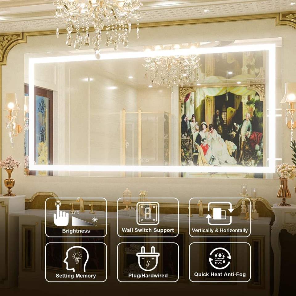 Adjustable LED-Lighted Rectangle Smart Modern Bathroom Mirror Wall-Mounted Touch Switch Illuminated Dimmable Toilet Salon Villa