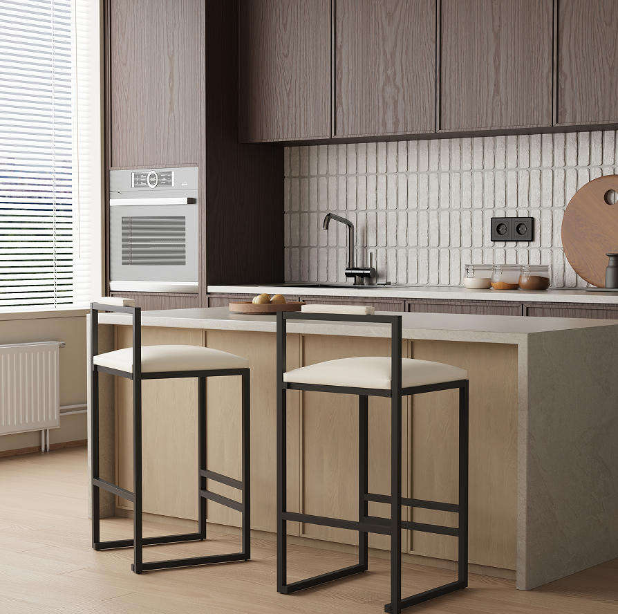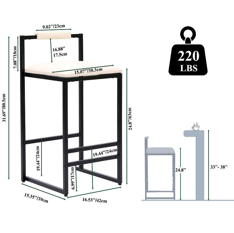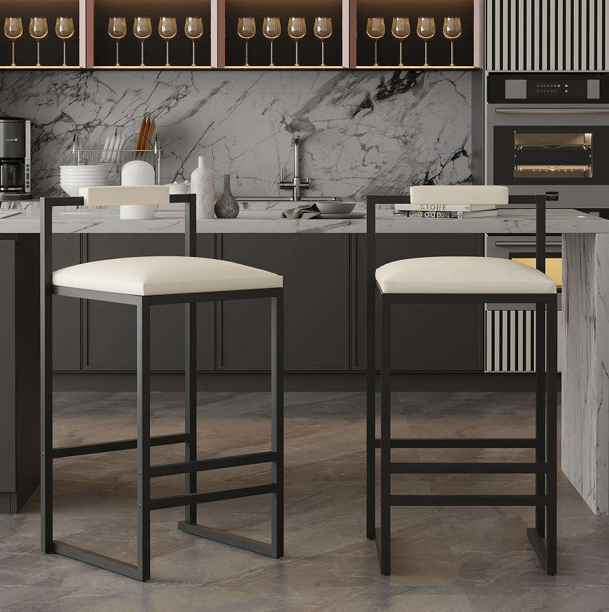 Adjustable Luxury Kitchen Stools Modern High Counter Height Bar Chairs with Steel Frame for Dining Living Room Bedroom Set of 2