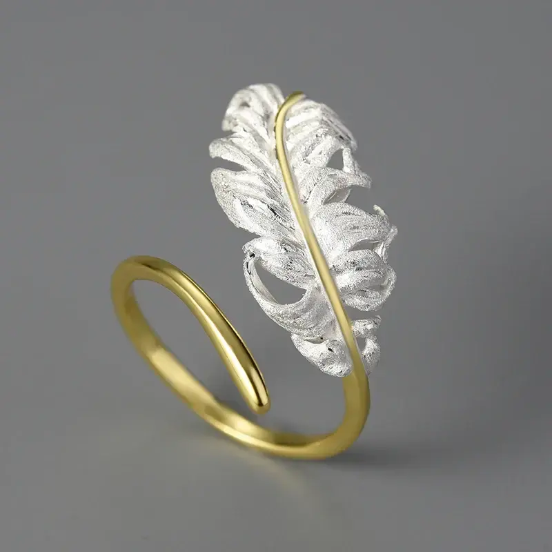 Adjustable Luxury Vintage Long Goose Feather Ring Trendy Eternity Cluster Inlay Silver Gold Plating Women's Stylish Parties