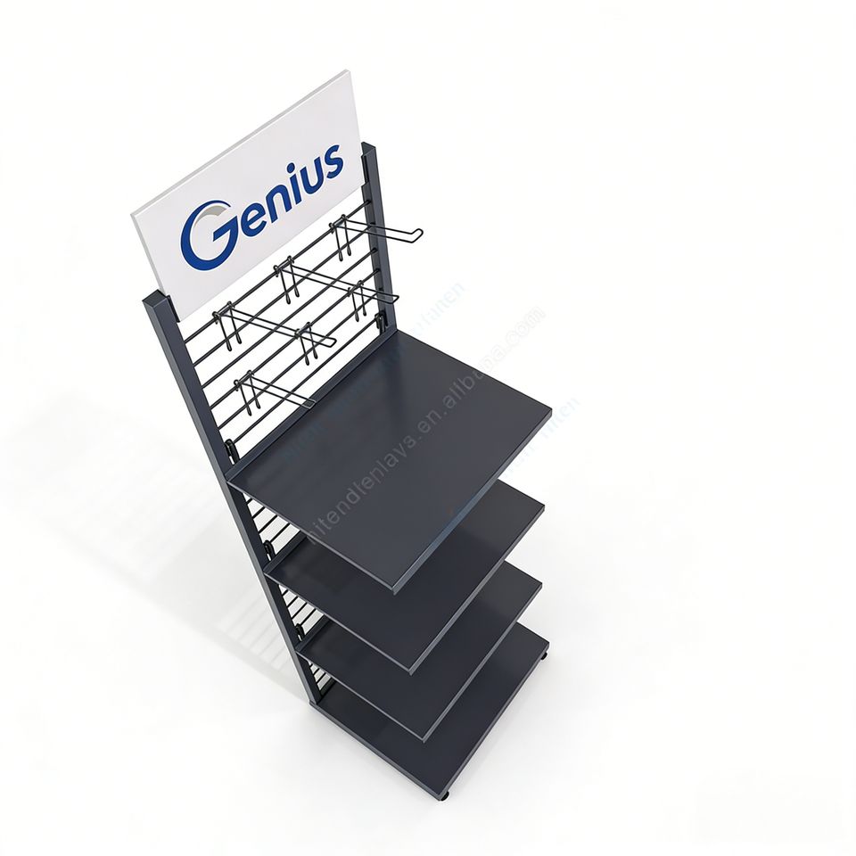 Adjustable Metal Display Stand with Shelves & Hooks DIY Assemble Floor Rack for Game Consoles Phone Accessories
