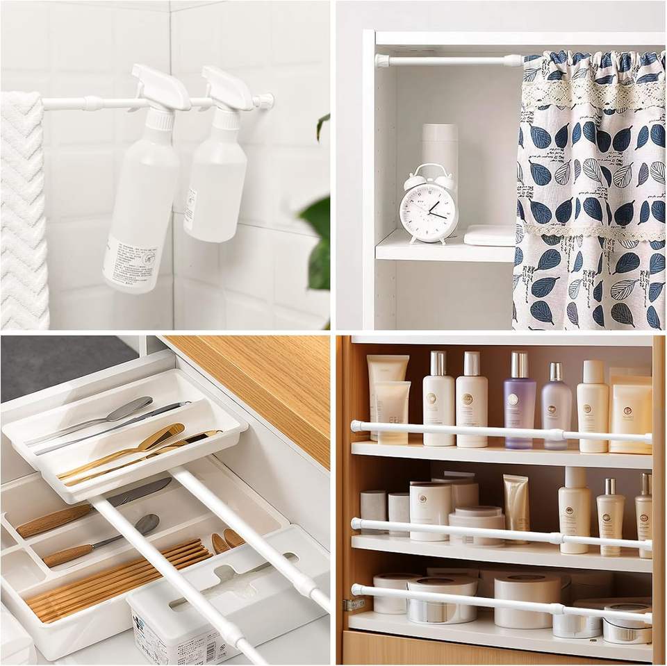 Adjustable Metal Telescopic Rod Hole-Free Installation Shrinking Thin Rod for Wardrobe Shower Curtain Poles Clothes Drying