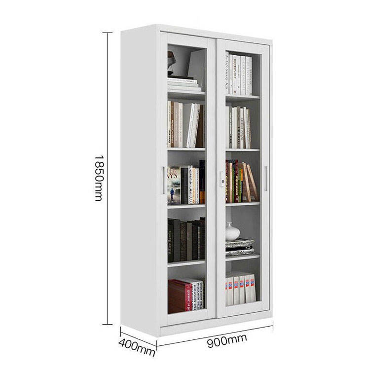 Adjustable Modern Metal Storage Cabinet with Locking 2 Glass Doors Steel Office Cupboard for Hospital and School Filing Use