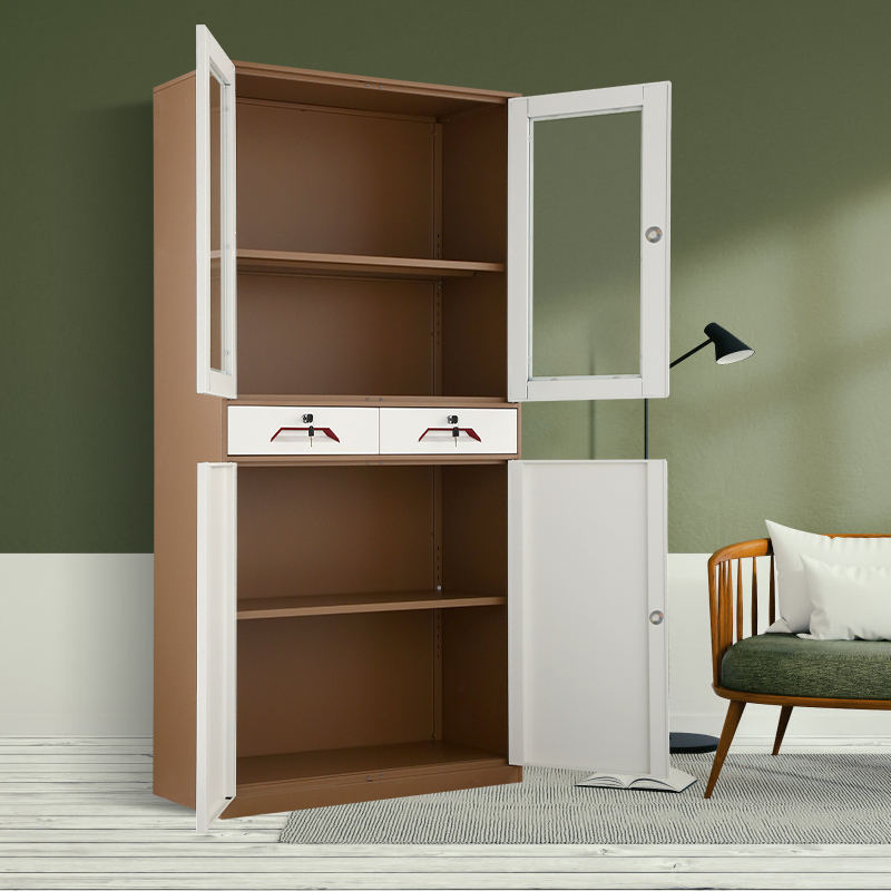 Adjustable Modern Style Steel Filing Cabinet with 2 Glass Doors Durable Metal for Home Office School Library & Hospital Use