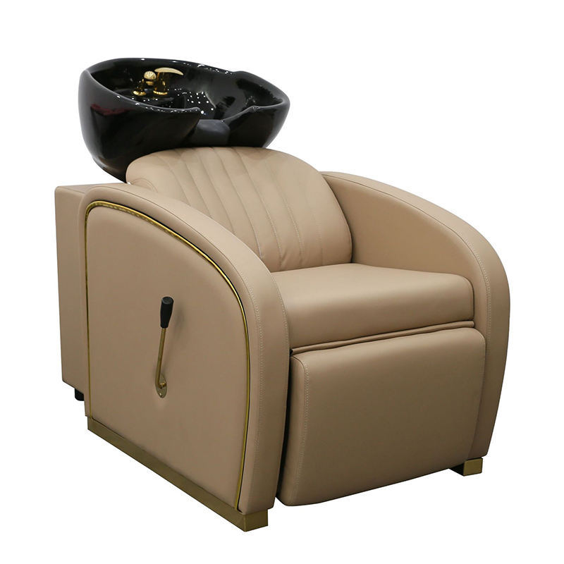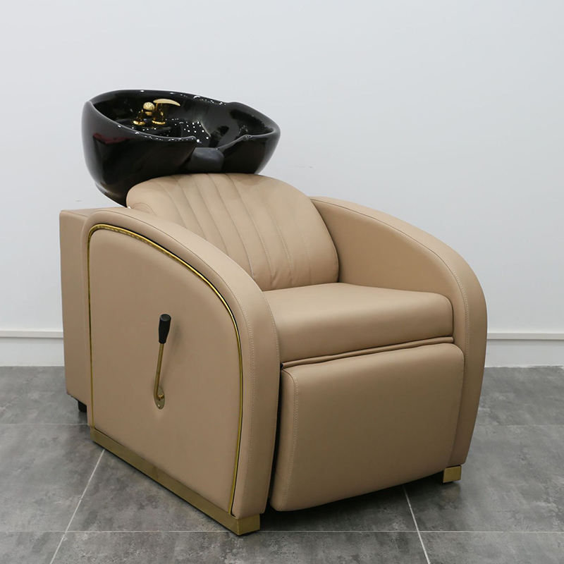 Adjustable Modern Synthetic Leather Shampoo Bed Ceramic Basin for Hair Salons Hotels Bathrooms High-End Massage Use Wholesale