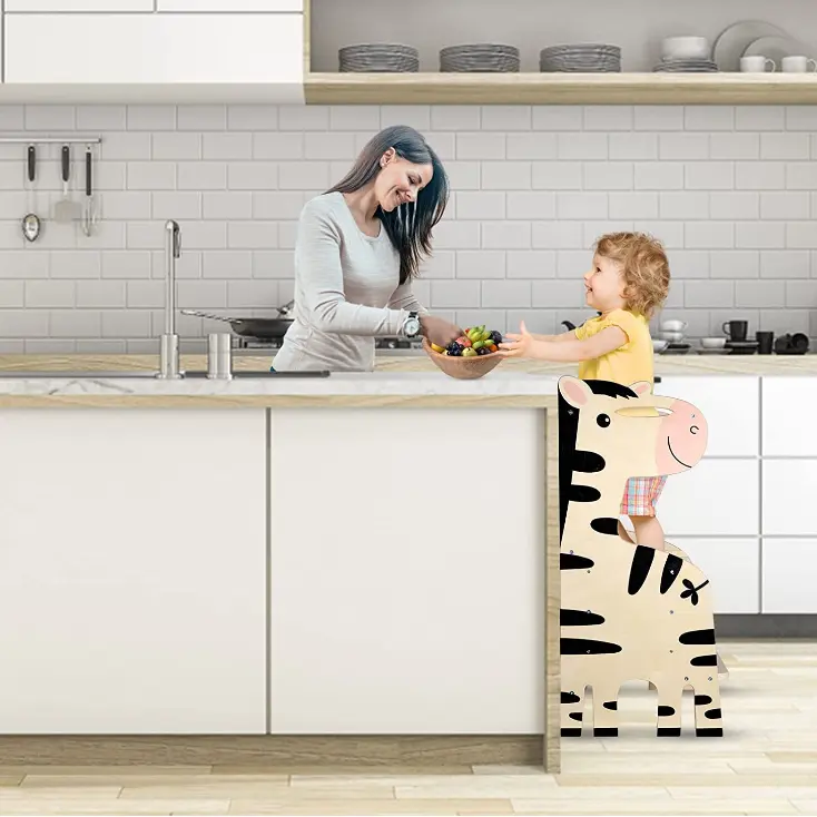 Adjustable Modern Wooden Tower for Kids Child-Friendly Folding Standing Learning Stool for Bathroom Kitchen Outdoor Living Room