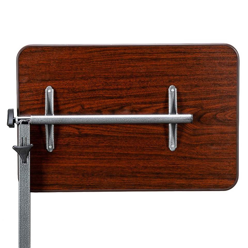 Adjustable Multifunctional MDF/Iron Bedside Table with 4 Wheels and Brake Dark Wood Grain Color for Hospitals