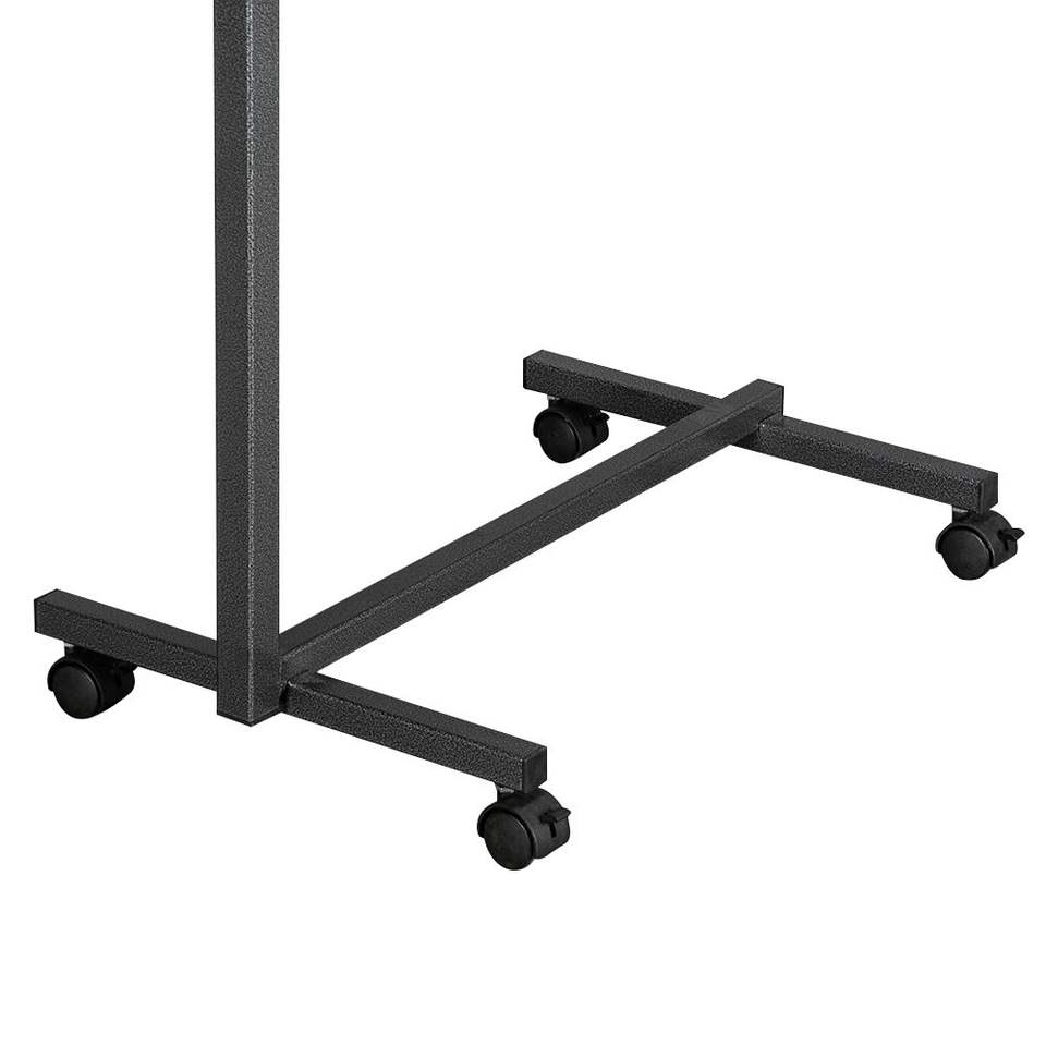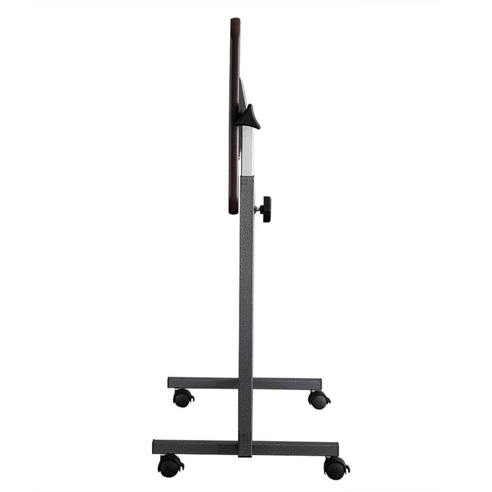Adjustable Multifunctional MDF/Iron Bedside Table with 4 Wheels and Brake Dark Wood Grain Color for Hospitals