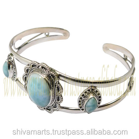 Adjustable Natural 925 Sterling Silver Larimar Gemstone Bangle Handmade Fancy Silver Jewelry Supplier
